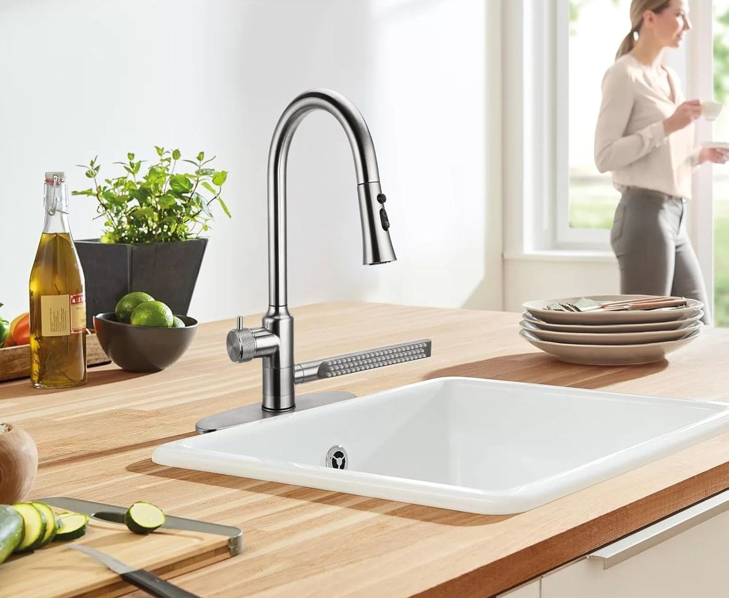 Ključne Prednosti i Prodajne Točke- Izvlačni izljev s punom rotacijom 360°: Omogućuje slobodno manevriranje i olakšava čišćenje sudopera.