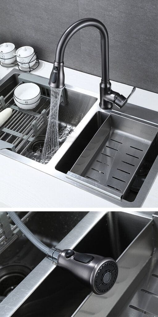 Ištraukiamas dizainas – patogus pasiekiamumas indų, kriauklės ar net aplinkinių paviršių plovimui.