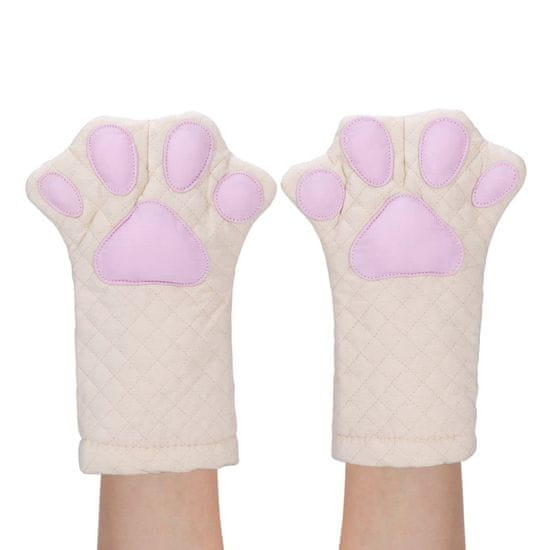 Nikcorp Kuhinjske rukavice mačja šapa, prošivene pamučne za pečenje i kuhanje, toplinska zaštita do 250°C, bijelo-roze