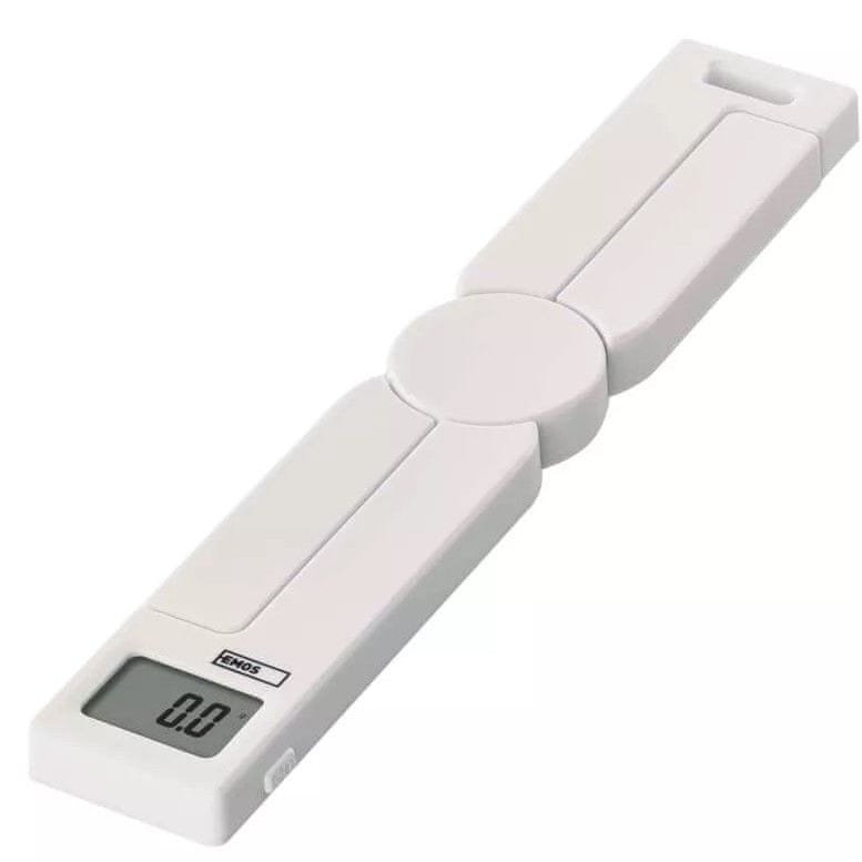 Digitalna vaga od ABS plastike ima potpuno sklopivu funkciju, što uvelike olakšava pohranu. Opremljena je i kukicom na koju možete objesiti vagu. Pogodan je za teret od do 5 kg i nudi točnost vaganja do 1 g. Težina se prikazuje na LCD ekranu. Napaja se priloženom baterijom 3 V CR2032. Sadrži funkciju tare, indikator preopterećenja i niske baterije te automatsko isključivanje.