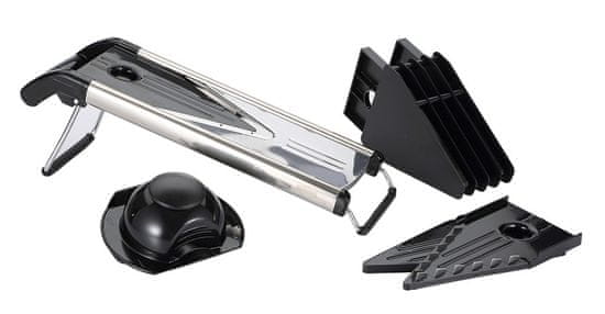 • materijal: nehrđajući čelik / plastika – dimenzije: 13 × 14 × 41 cm – protuklizne nožice – zaštitni poklopac za prste – uključena tri različita nastavka – idealno za krumpir, kupus, jabuke, luk, krastavce, mrkvu, paprike itd.
