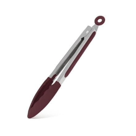 Ove kuhinjske hvataljke u elegantnoj mat bordo boji praktičan su dodatak svakoj modernoj kuhinji. Izrađeni su od izdržljivog nehrđajućeg čelika i obrađeni toplinski otpornim silikonom, koji štiti vaše posuđe od ogrebotina, a istovremeno osigurava sigurnu i udobnu upotrebu.