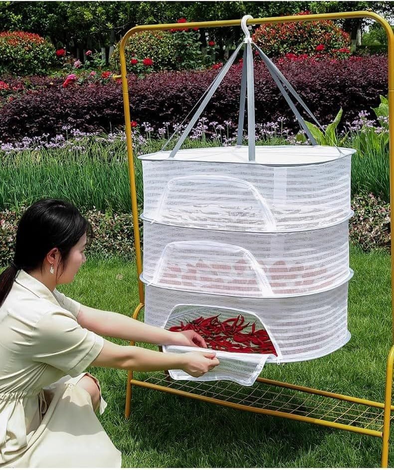 Netscroll Zloživa mrežasta košara za sušenje hrane, 3 razine, zaštita od insekata, sušilica za voće i povrće s patentnim zatvaračem i kukom za vješanje, ZipBasket