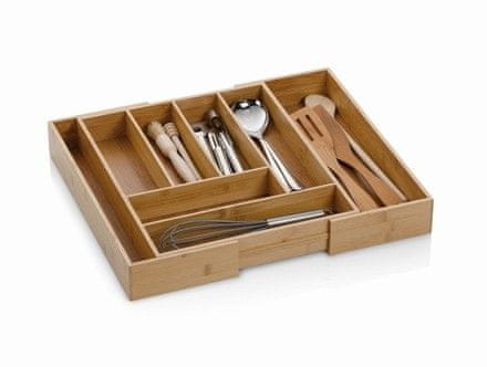 - materijal: prirodno bambusovo drvo – lagan, izdržljiv materijal s dugim vijekom trajanja – produljiva duljina, savršeno se prilagođava vašoj ladici – podesiva duljina: 35 do 58 cm – dubina: 43 cm – visina: 6,5 cm – 6 do 8 pretinaca