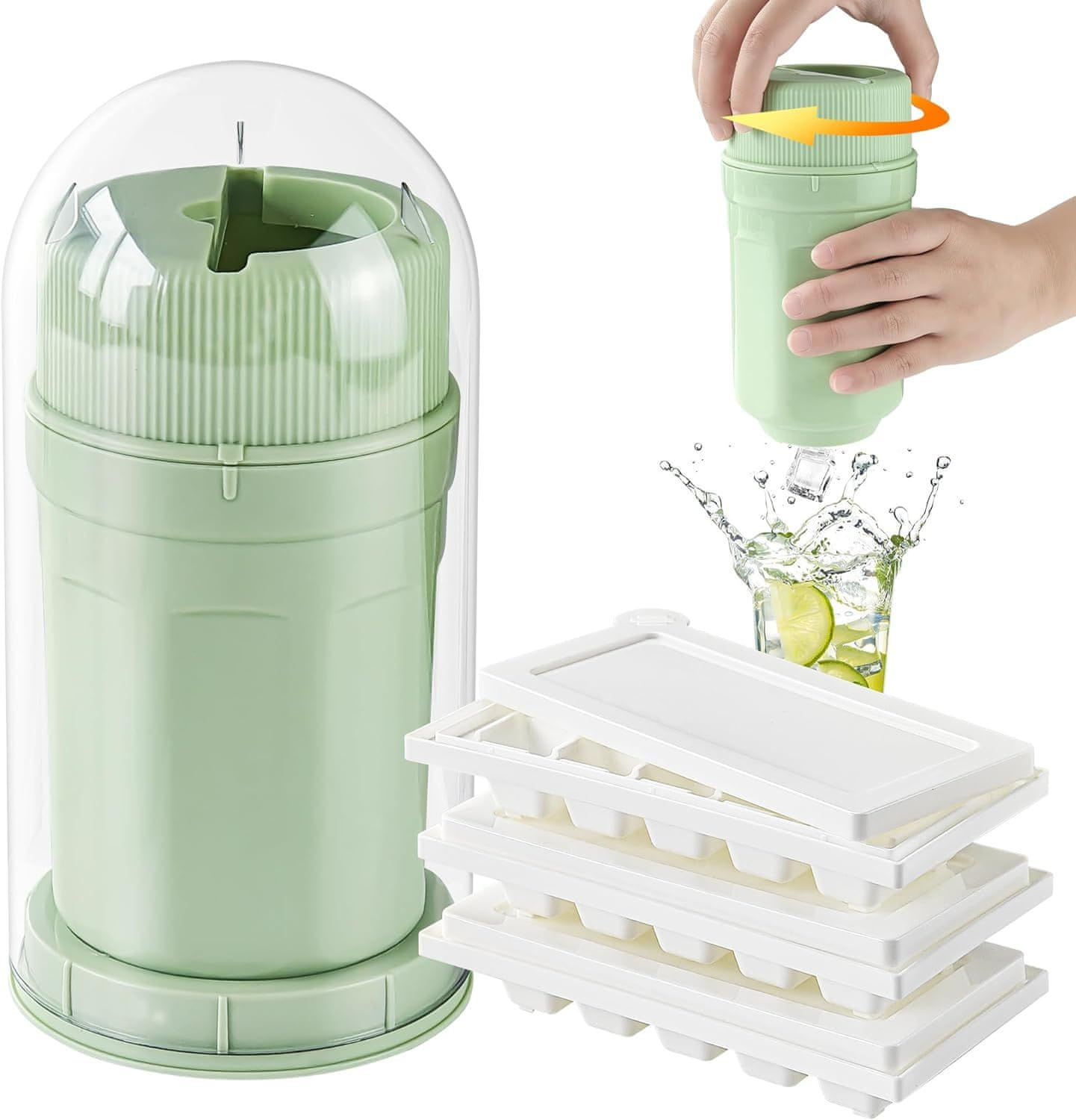 Nikcorp Posuda za led u obliku čaše za jednostavno pravljenje kockica leda, s poklopcem, od polipropilena, zelena, 21 cm