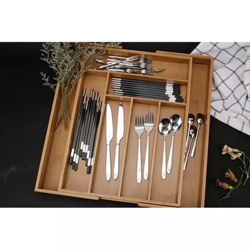 Organizator za kuhinjske ladice izrađen od bambusovog drva ima jednostavan oblik, zahvaljujući kojem se uklapa u moderne kuhinje.