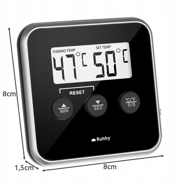 - Ugrađeni magnet omogućuje pričvršćivanje termometra na metalne površine kao što su hladnjak, roštilj ili pećnica.