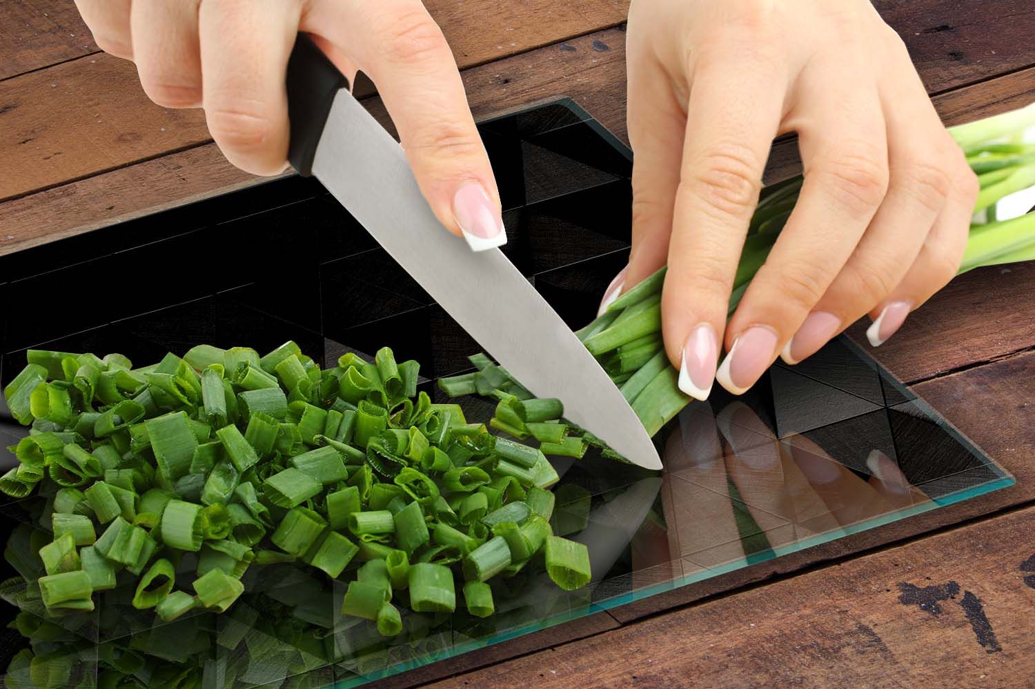 Staklena daska za rezanje – higijenska i otporna na mirise, idealna za sjeckanje povrća, mesa ili kruha.