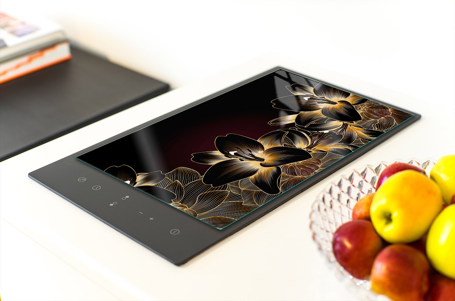 trajnosti čak i na visokim temperaturama. Staklena površina je glatka i otporna na blago zaobljenim kutovima. ✔️ Jedinstvena UV tehnologija tiska čini boje grafike