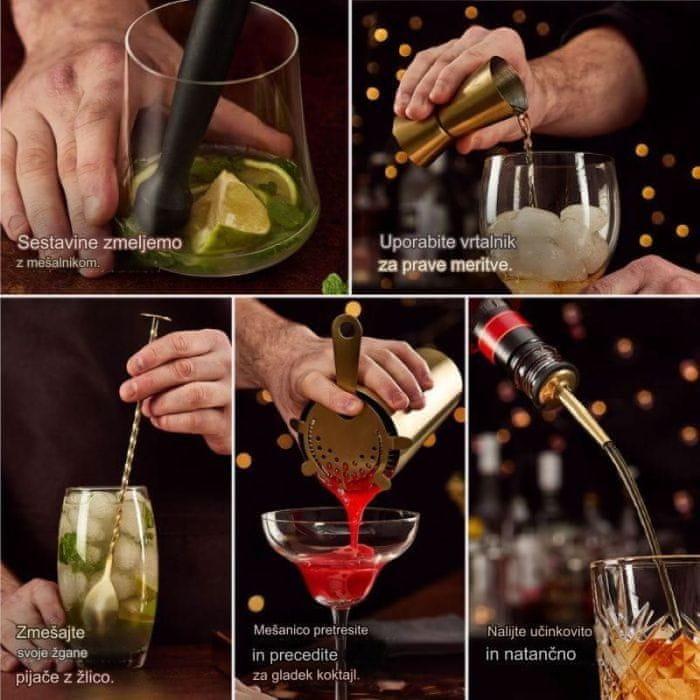 KLASIČNI ZLATNI SET ZA PRIPREMU KOKTELA