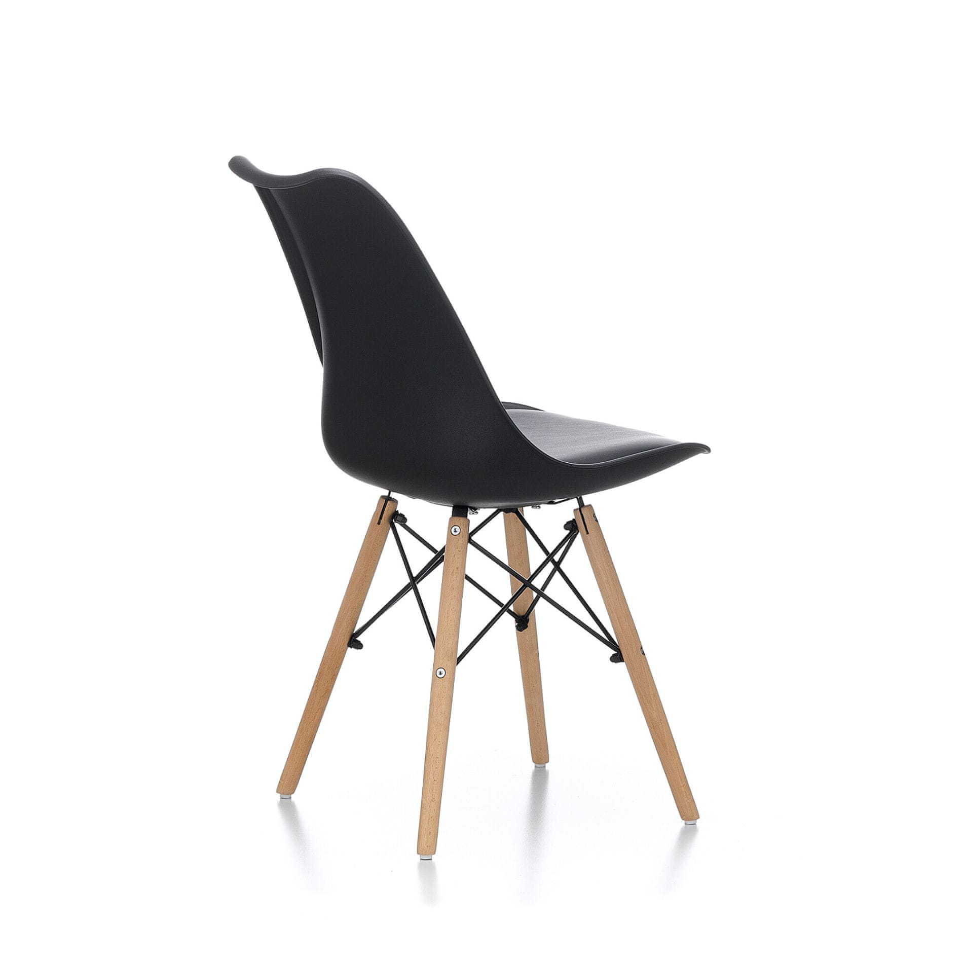 Stolica je izrađena od kvalitetnog i izdržljivog polipropilena s jastukom presvučenim umjetnom kožom u kombinaciji s nogama od bukovog drveta.
