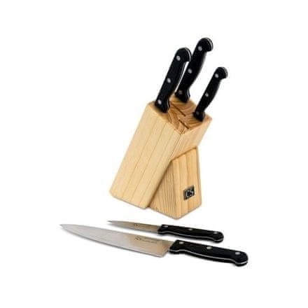 Set noževa u bloku CS Solingen CS 045791 Materijal: nehrđajući čelik/drvo Boja: srebrna/crna/prirodno smeđa Set sadrži sljedeće noževe: Kuhinjski 9 cm, za rezanje rajčice 13 cm Za kruh 20 cm, za.