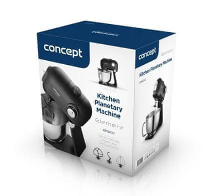 Kuhinjski robot Concept RM8010 ELEMENT u elegantnom crnom dizajnu i kompaktnoj veličini postat će elegantan dodatak svakoj modernoj kuhinji bez zauzimanja nepotrebnog prostora. S snagom od 1200 W nudi dovoljno snage za sve kuhinjske zadatke, čak i one najzahtjevnije. Kućište od metala, uključujući unutarnje zupčanike, osigurava visoku izdržljivost, nesmetan rad i dugi vijek trajanja, što ćete cijeniti u svakodnevnoj upotrebi. Čvrsta konstrukcija pruža stabilnost tijekom rada i učinkovito minimizira vibracije i buku.