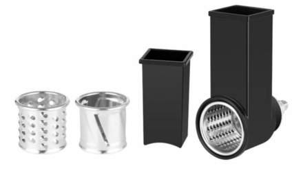 Kako biste se mogli osloniti na naš kuhinjski robot za mnoge različite kulinarske aktivnosti, dolazi s mnogo praktičnog pribora. Za miješanje vrhnja možete koristiti kuku za tijesto, kuku za pjenjaču, pjenjaču od nehrđajućeg čelika ili gumenu pjenjaču s lopaticom. Također smo uključili mlin za meso s 3 izmjenjiva diska (za mljevenje različitih vrsta mesa) i bubanj-ribež s 3 izmjenjiva nastavka od nehrđajućeg čelika.