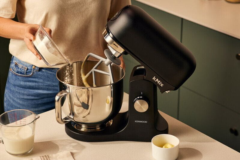 Pokažite svoj jedinstveni stil u kuhinji s kMix kuhinjskim robotom u elegantnoj crnoj boji. S usavršenim dizajnom koji spaja matirane i sjajne detalje te naglaske od nehrđajućeg čelika, kMix dodaje dašak profinjenosti svakoj kuhinji.