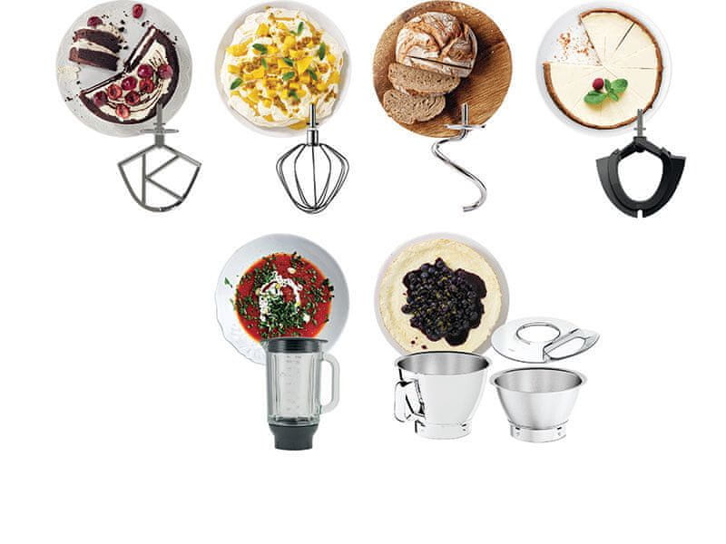 Inovativni i intuitivni Titanium Chef Baker XL najbolji je prijatelj svakog strastvenog kuhara. Posjeduje dvije posude od nehrđajućeg čelika, volumena 5 i 7 litara, koje se mogu spremati jedna u drugu. Nudi pulsnu funkciju i izbor između deset brzina, koje možete jednostavno mijenjati okretnim gumbom. Funkcija LightLift omogućuje lako podizanje glave robota za dodavanje sastojaka ili uklanjanje spremnika. Planetarni sustav miješanja dopire do svakog dijela zdjele kako bi se osiguralo dosljedno miješanje. Sadrži ugrađenu EasyWeigh vagu, pomoću koje možete vagati sastojke u bilo kojem trenutku. Osim toga, nudi funkciju tajmera. Njegov bogati pribor omogućuje raznovrsnu pripremu jela, od miješanja, tučenja i gnječenja.