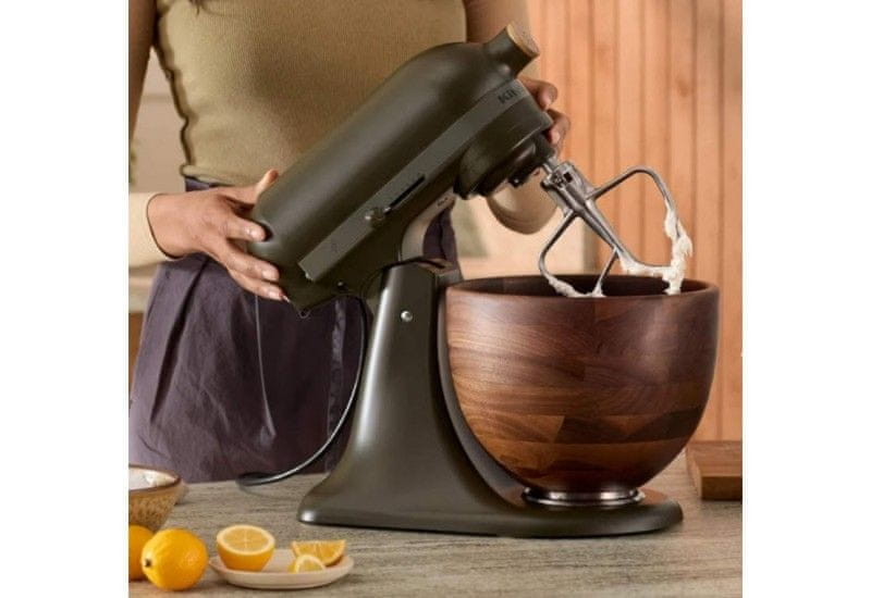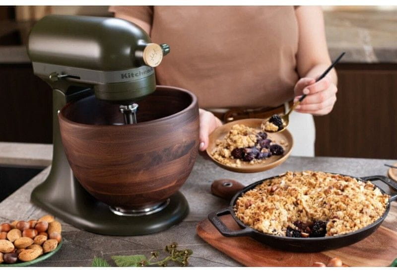 Kuhinjski robot KitchenAid Artisan 5KSM180WSEEG u ograničenom izdanju s posudom od orahovog drva spaja vrhunske performanse s jedinstvenim dizajnom. Zahvaljujući planetarnom sustavu miješanja, robusnoj konstrukciji i širokom rasponu dodataka, savršeno obavlja sve zadatke – od mućenja do miješenja tijesta – uz maksimalnu preciznost i učinkovitost.