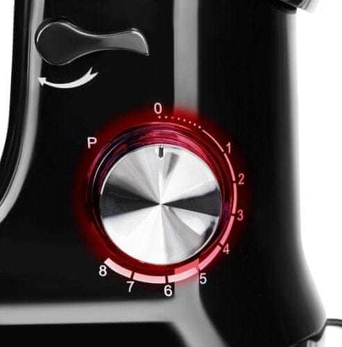 - 8 RAZINA UČINKOVITOSTI – uređaj je opremljen s 8 razina radne brzine, od kojih je svaka prilagođena potrebama recepta koji se provodi u određenom trenutku, uklj. miješanje, miješanje, lomljenje, gnječenje tijesta, miješanje i drugo . Osim toga, ima funkciju PULSE.