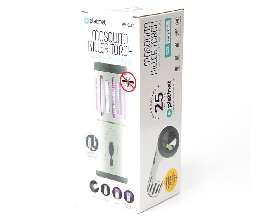 Platinet PMKL60 2-u-1 lampa protiv insekata ubija ne samo komarce, već i druge insekte poput muha, moljaca i komaraca, stvarajući sigurno i ugodno okruženje za vas i vašu obitelj. Lampu možete postaviti ili objesiti gdje god želite. Idealan suputnik i proizvod za kampiranje, postavljanje u vrtu, na unutarnjoj ili vanjskoj terasi, no uvijek ga možete koristiti i u zatvorenom prostoru, kao što je kuća, trgovina, stan ili ured.