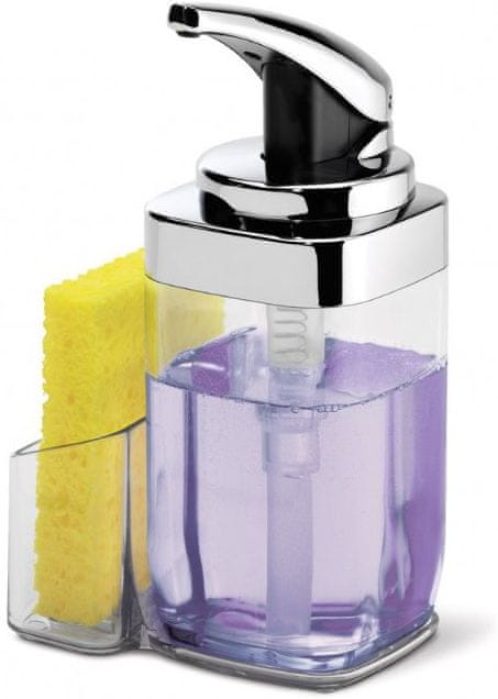 Raspršivač, primjeren za sapun ili deterdžent, dopunjuje ga držač za kuhinjske spužvice. Pritisnite ručicu raspršivača, kapaciteta 650 ml, i uzet ćete potrebnu količinu, ovisno koliko jako pritisnete. Cijeli opis