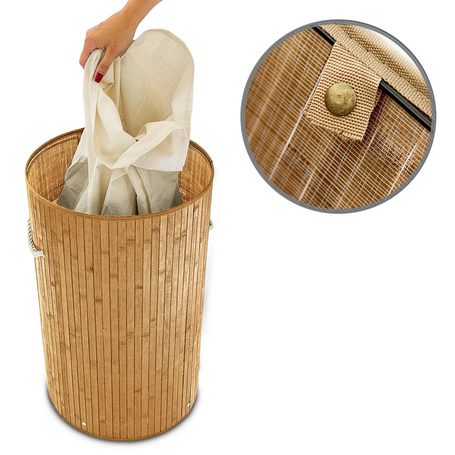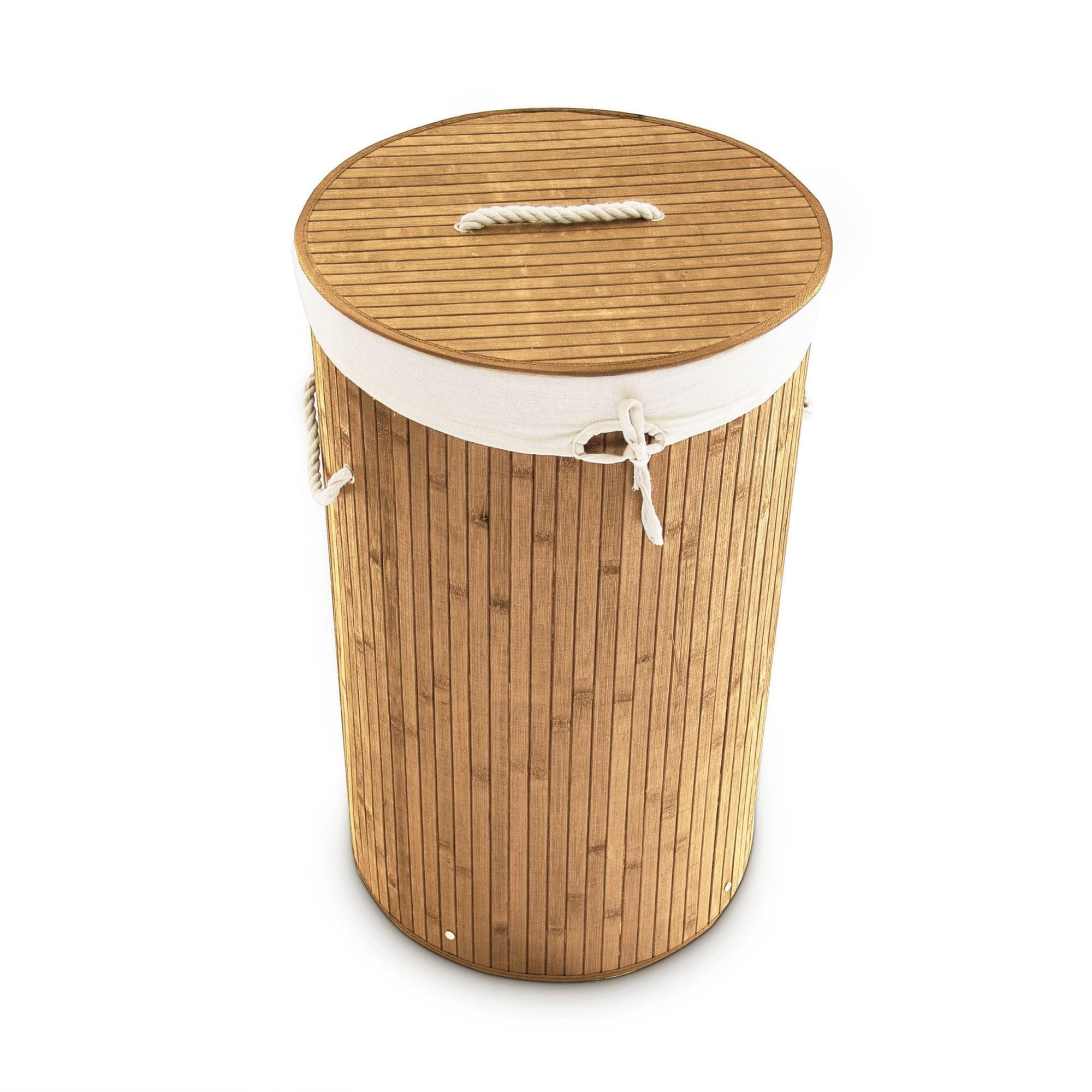 Northix Okrogla košara za perilo iz bambusa s pokrovom in vrečo