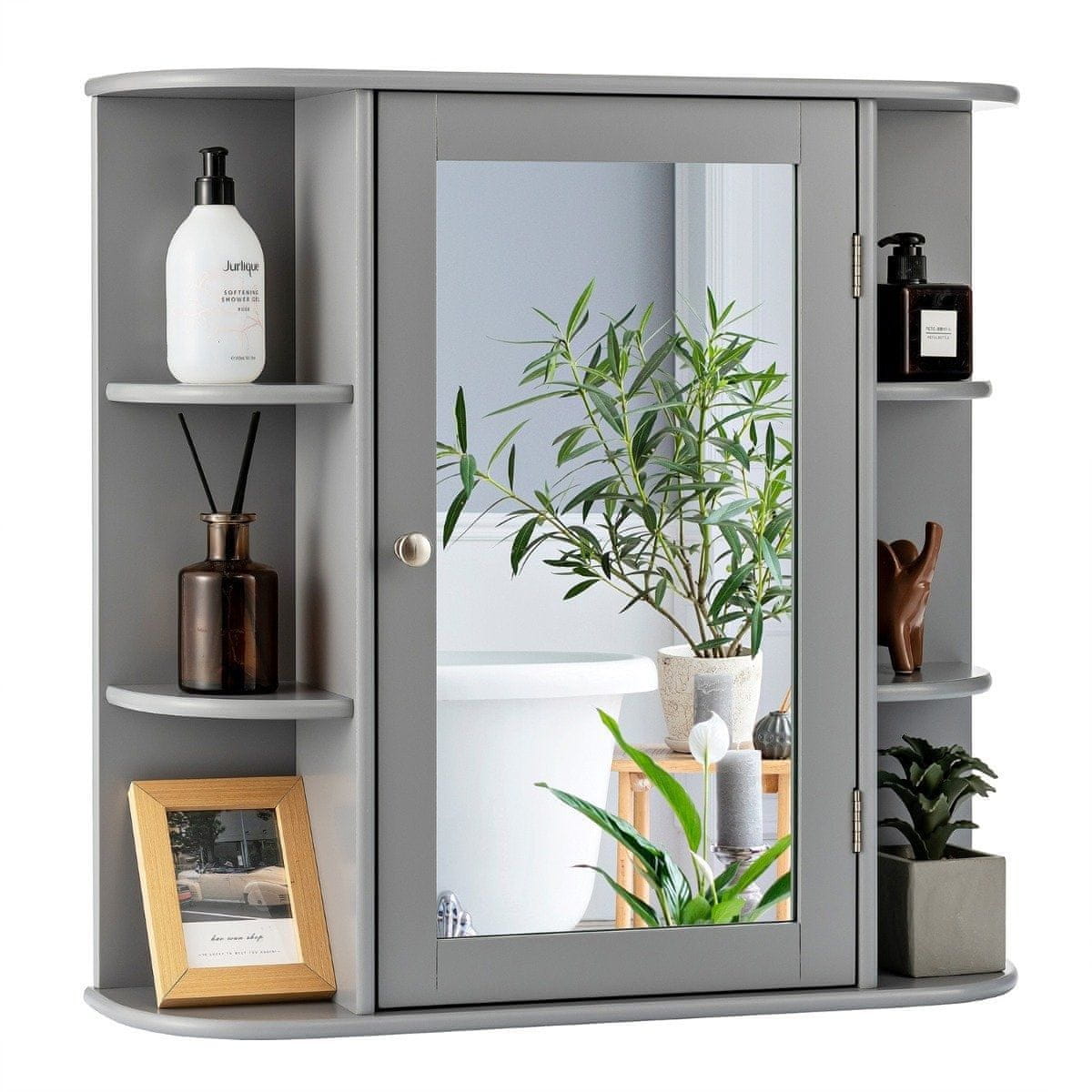 Northix Zidni kupaonski ormarić s ogledalom 66x16,7x63 cm MDF sivi