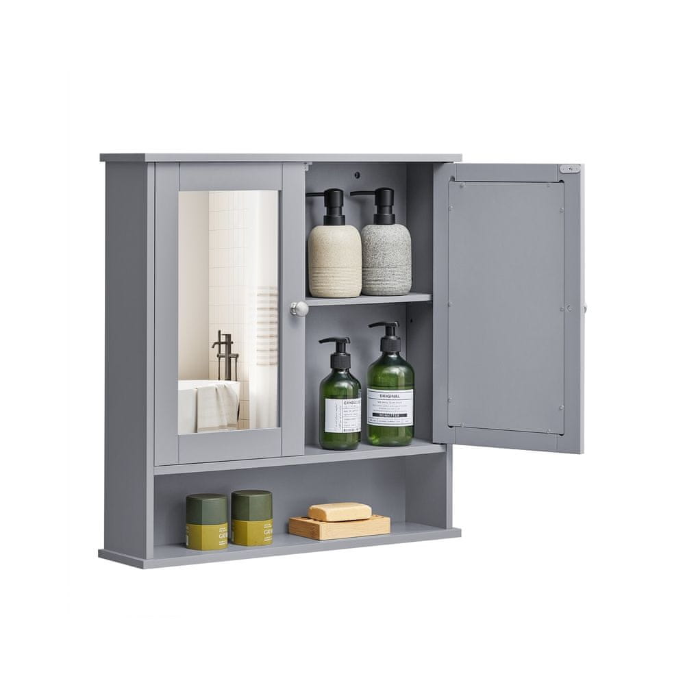 Songmics Ormarić sa ogledalom 565x585x13 cm Sivi