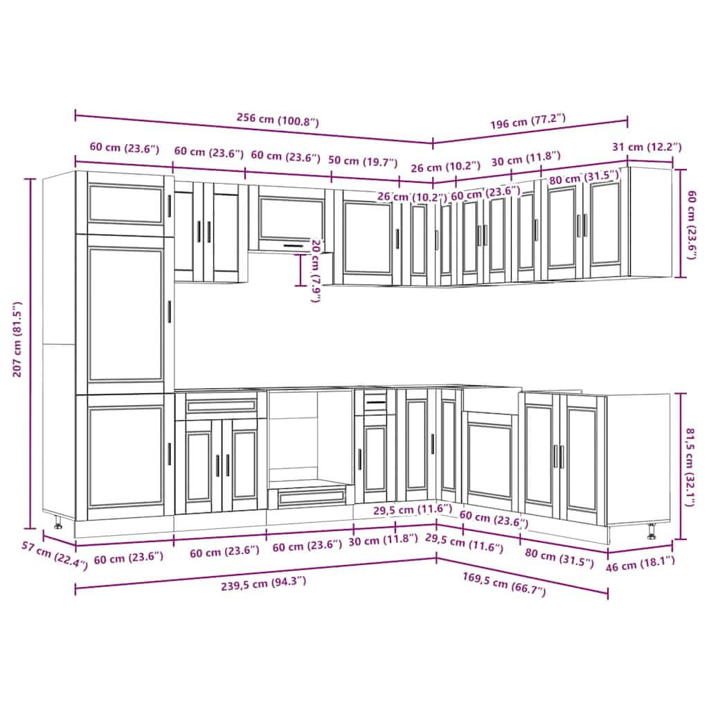 Ovaj set kuhinjskih ormarića od 14 dijelova, sa svojim elegantnim dizajnom, optimizira vaš kuhinjski prostor i pruža dovoljno prostora za pohranu vaših osobnih stvari!