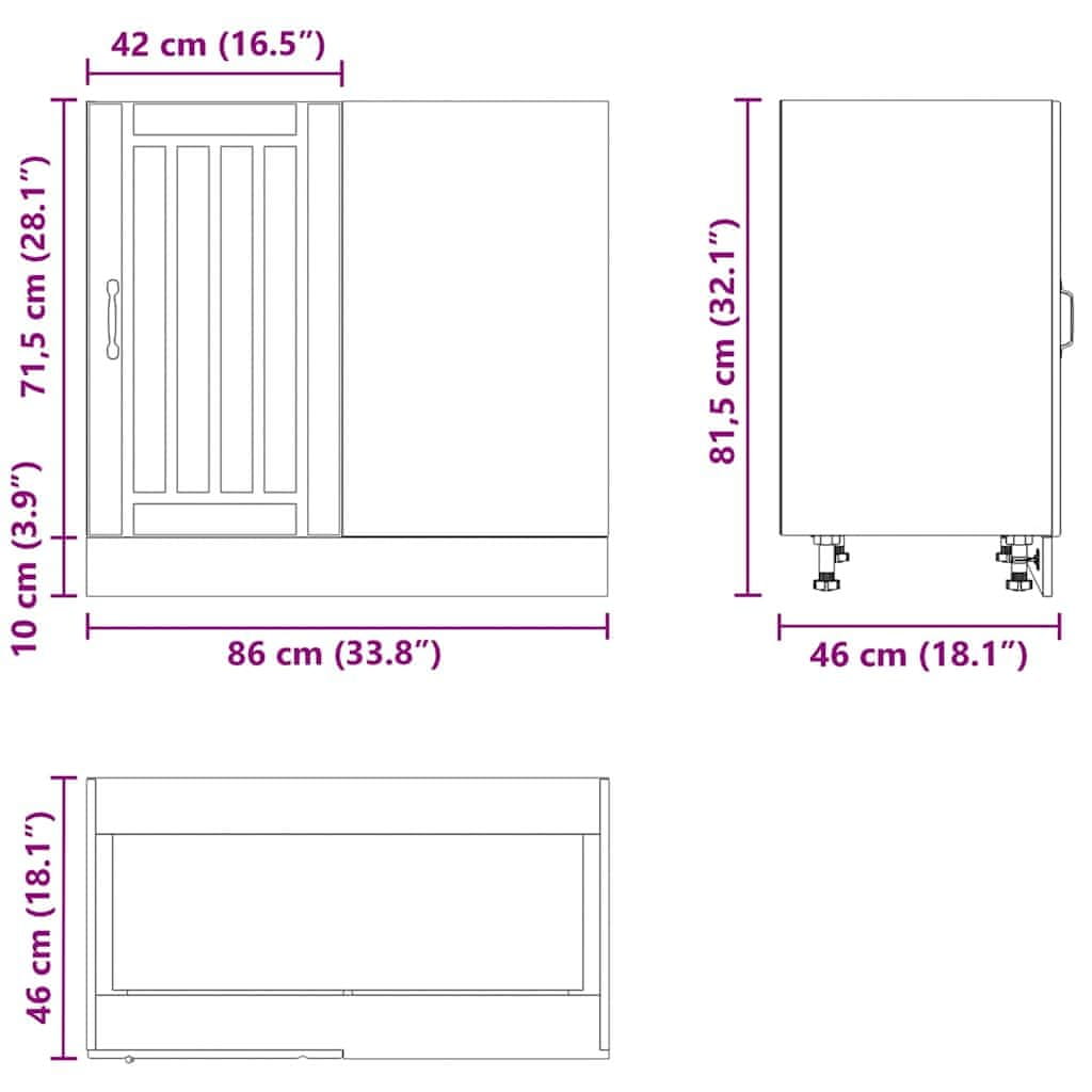 - Podesive nožice: Nožice ovog ormarića za sudoper mogu se podesiti po visini kako bi odgovarale rasporedu vaše kuhinje.