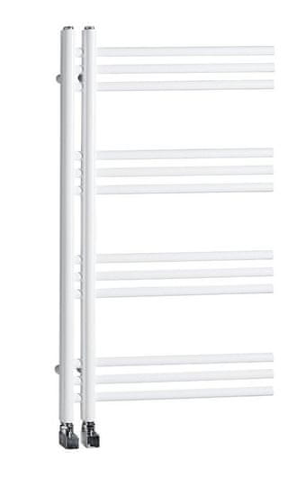 Dizajnerski oblikovani kupaonski radijator iznimnog izgleda izrađen je od čeličnih cijevi. Posebno ćete cijeniti njegovu praktičnost, zahvaljujući svojoj konstrukciji omogućuje jednostavno i praktično vješanje ručnika sa strane na vodoravne šipke. Praktični razmak od 50 mm središnjeg priključka omogućuje kombiniranje s dizajnerskim ventilima iz naše ponude i u kombinaciji s električnom grijaćom šipkom.