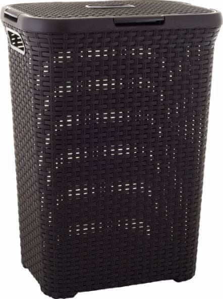 Plastična košara za rublje kapaciteta 60L. Moderan dizajn kolekcije STYLE (imitacija ratana). Mogućnost otvaranja poklopca na bilo koju stranu. Rupe u tkanju osiguravaju cirkulaciju zraka. Bočne ručke za jednostavno rukovanje. Visokokvalitetan i izdržljiv materijal.