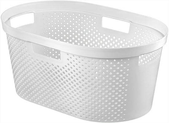 Plastična košara za rublje iz kolekcije INFINITY DOTS. Serija INFINITY ističe se svojim jednostavnim oblikom – inspiriranim skandinavskim stilom. Perforirana konstrukcija osigurava cirkulaciju zraka. Jednostavno rukovanje zahvaljujući četiri čvrste ručke. Moderan, čist dizajn čini ovu košaru elegantnim dodatkom svakoj kupaonici. Kvaliteta marke Curver.