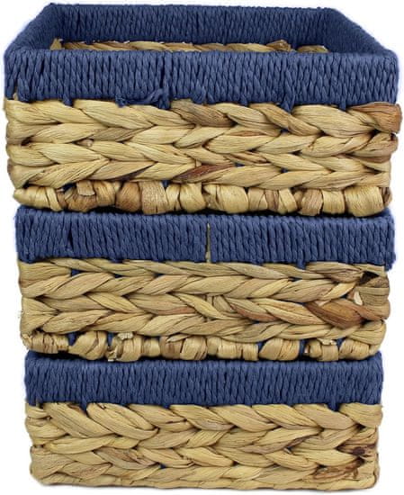 Nikcorp Set od 3 ručno pletene košare za odlaganje od vodenog zumbula s plavim rubom - dekorativni organizatori 22 cm