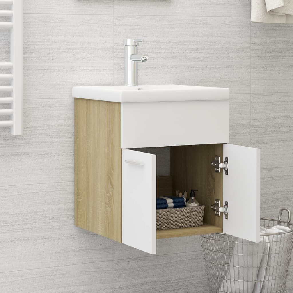 Vidaxl Ormarić s ugrađenim umivaonikom bijeli i boja hrasta drveni