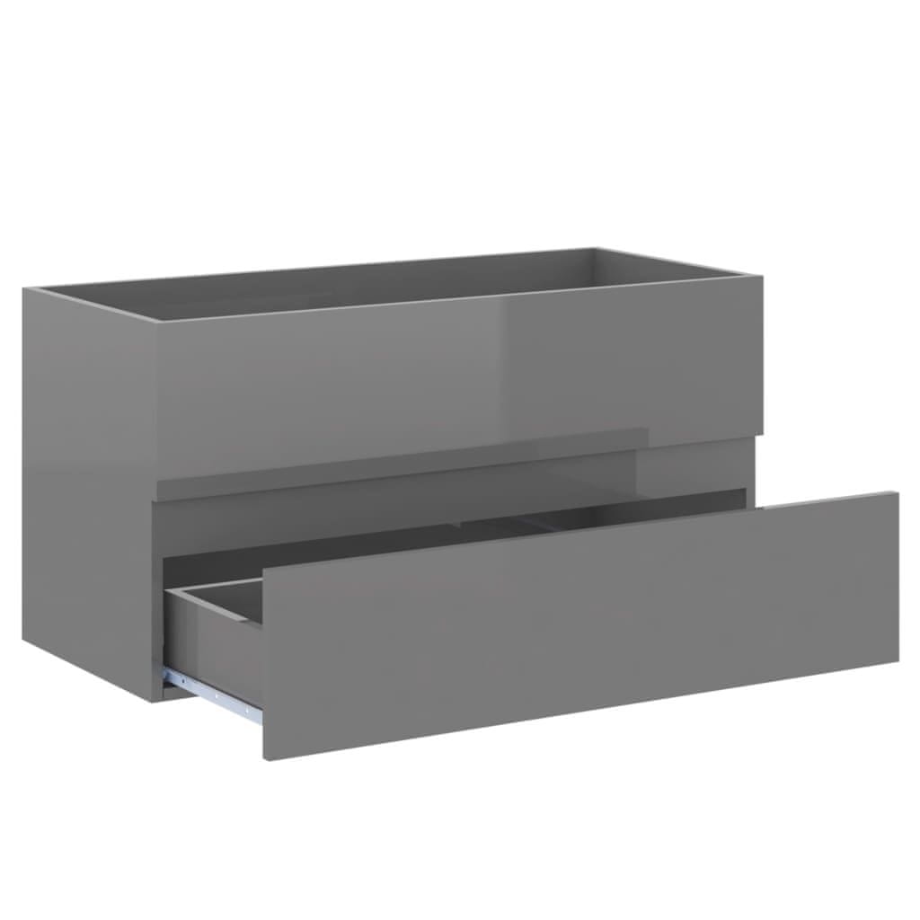 Vidaxl Set kupaonskog namještaja od iverice visoki sjaj sivi