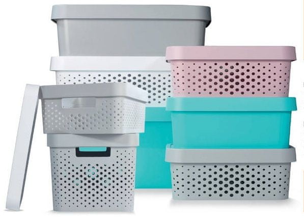 Curver Infinity bijela kutija za pohranu od reciklirane plastike je praktična košara s jednostavnim linijama, a svoju je inspiraciju pronašla u skandinavskom stilu. Pogodna je za upotrebu u kupaonici, garderobi i kuhinji. Ručke su dizajnirane tako da ne zauzimaju dodatni prostor. Zbog toga kutije učinkovito popunjavaju prostor na policama.