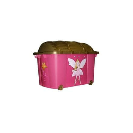 Mobilna kutija za pohranu 57 l plastika 60×40×42 cm Vila KAISERHOFF KO-896542. Dječja škrinja za pohranu s poklopcem i motivom vile savršena je za sve djevojčice. Kutija od 57 litara izrađena je od plastike, što je čini laganom i perivom.