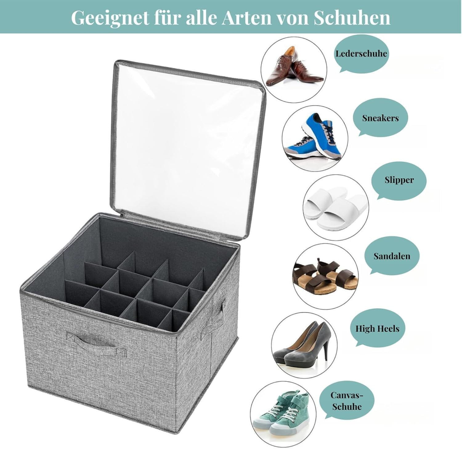 Nikcorp Sklopivi organizator za cipele sa 16 pretinaca i prozirnim poklopcem set 2 komada sivi 44,5x44,5x32 cm