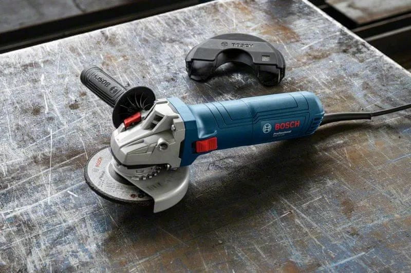 Kutna brusilica GWS 12–125 Professional idealna je za svakodnevnu upotrebu – jednostavna, pristupačna i ergonomska. Opremljena je izdržljivim i snažnim motorom koji se učinkovito nosi s preopterećenjima, što omogućuje brže odvijanje posla. S manjom ručkom za bolju ergonomiju, razlikuje se udobnošću tijekom korištenja, olakšava obradu metala i povećava točnost rada. Za dodatnu sigurnost, opremljena je štitnikom podesivim bez alata i prekidačem za zaključavanje te ima zaštitu od ponovnog pokretanja. Plastični štitnik za rezanje sa kopčom uključen je u opseg isporuke za korištenje pri rezanju.
