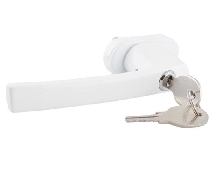 SPECIFIKACIJA – boja: bijela, vanjske dimenzije ručke (dužina/širina): 13/2 cm, težina: 250 g, set sadrži: ručku, bravu, ključeve.
