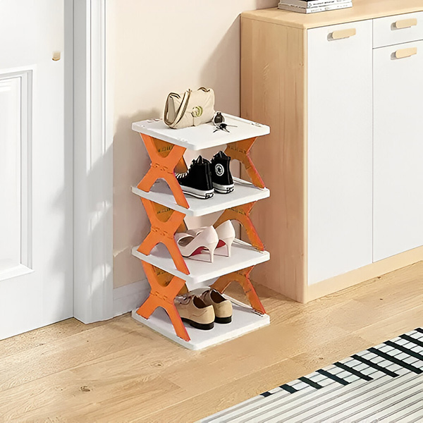 HOME & MARKER® Sklopivi stalak za cipele s 4 police, organizator cipela za hodnik i ormar (bijelo-narančasti) | OBUCKO