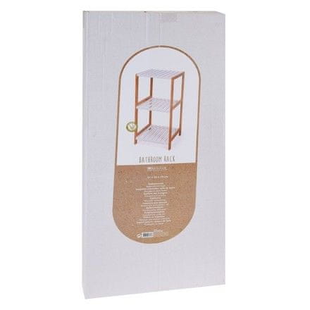Polica za kupaonicu, 3 MDF police, bambusove noge s bijelim policama, dimenzije 33×34×v79cm, noge 13×32mm Cijeli opis