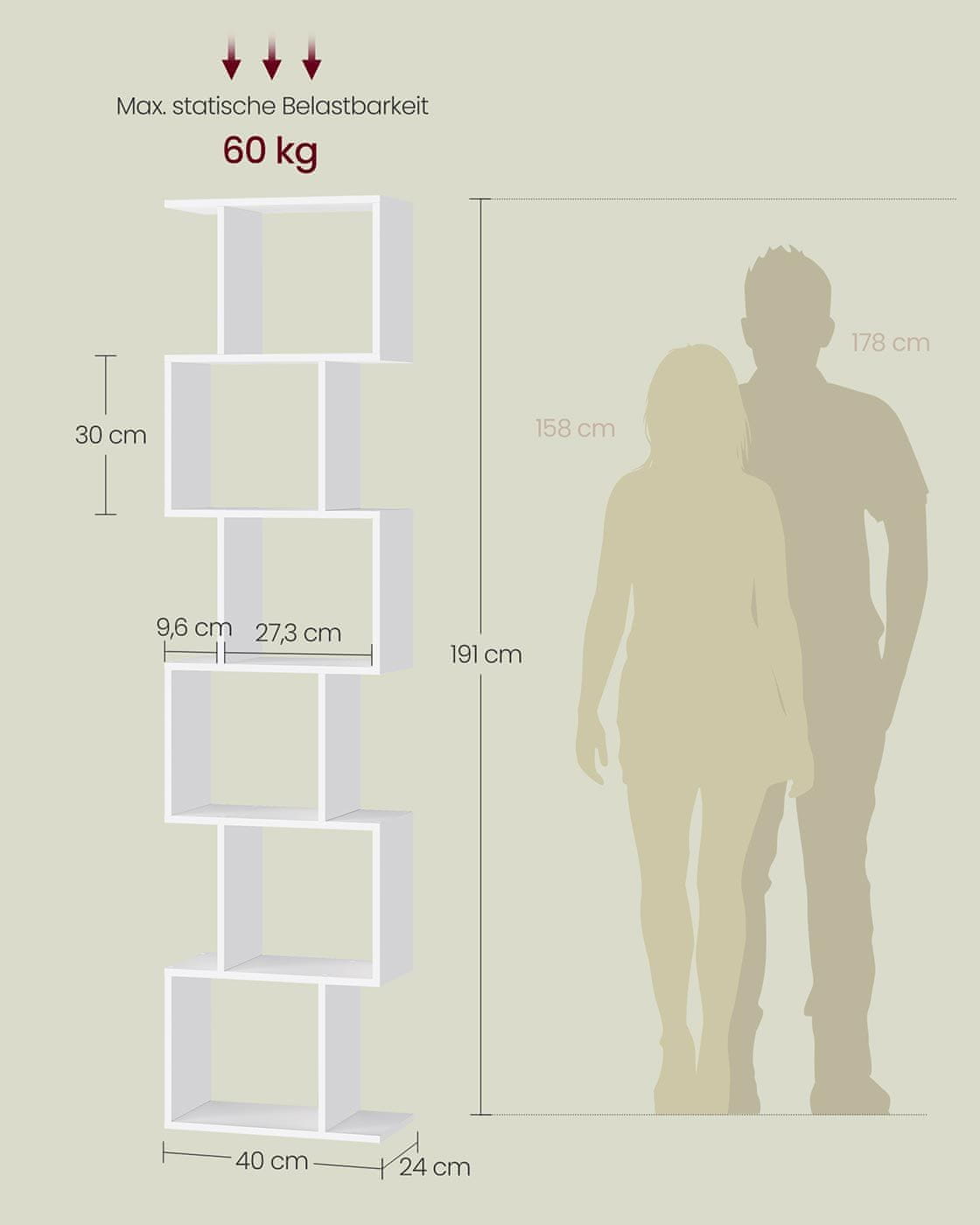 - Veličina: 24 × 40 × 191 cm (D x Š x V)