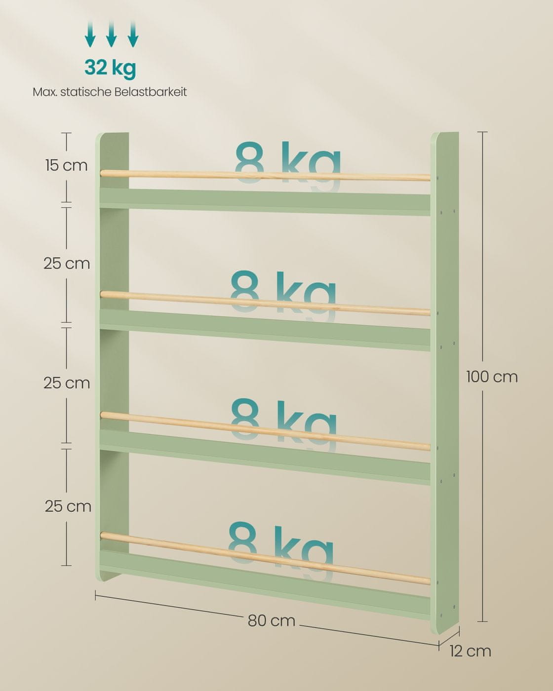 Songmics Knjigovodstveni regal 12x80x100 cm Zeleno