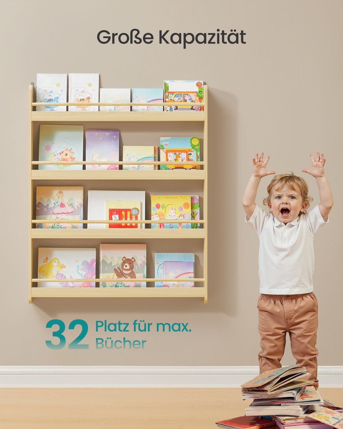 Ova dječja polica za knjige dizajnirana je za organizaciju knjiga i igračaka u dječjoj sobi ili igraonici. Njena višerazinska struktura omogućuje lak pristup predmetima potičući djecu da održavaju svoj prostor urednim. Kombinacija čvrstih materijala osigurava trajnost i prirodan izgled koji se uklapa u različite stilove interijera.