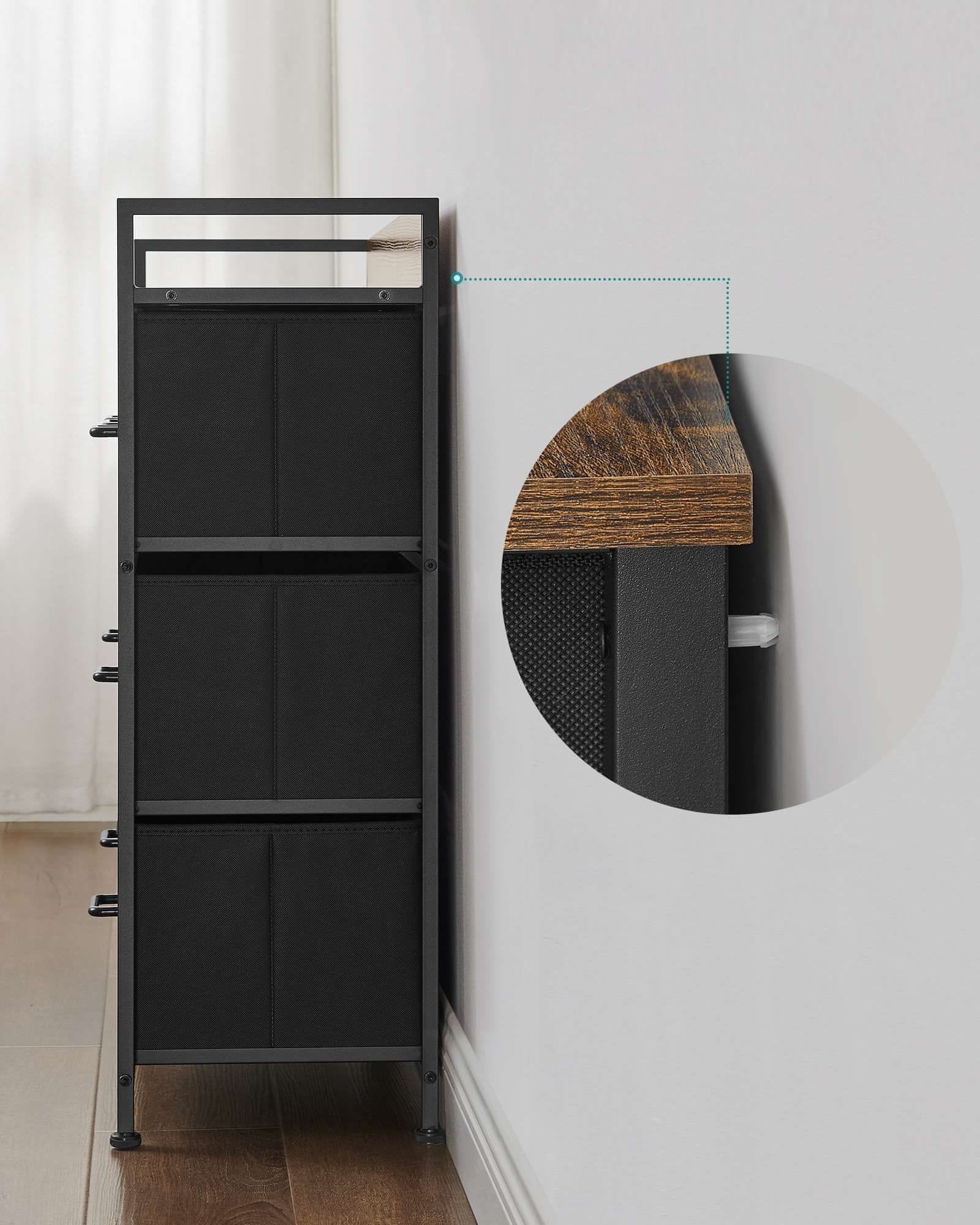 Ova komoda s ladicama od tkanine nudi praktično rješenje za pohranu u vašoj spavaćoj sobi ili dnevnom boravku, pomažući vam da učinkovito organizirate odjeću i potrepštine. Njezin industrijski dizajn unosi moderan izgled u svaki prostor, a pritom osigurava izdržljivost i dugotrajnu upotrebu.