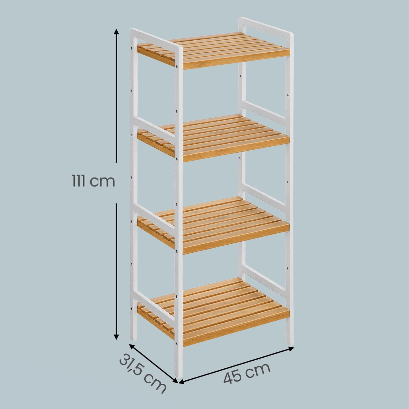 Ovaj svestrani regal dizajniran je za praktično skladištenje i organizaciju u različitim prostorima poput kupaonice kuhinje dnevnog boravka spavaće sobe ili balkona. Njegova prirodna i bijela boja skladno se uklapa u različite stilove interijera dok čvrsta konstrukcija osigurava pouzdanu upotrebu. Polica je idealna za pohranu knjiga kuhinjskog posuđa kupaonskih potrepština ili ukrasnih predmeta.