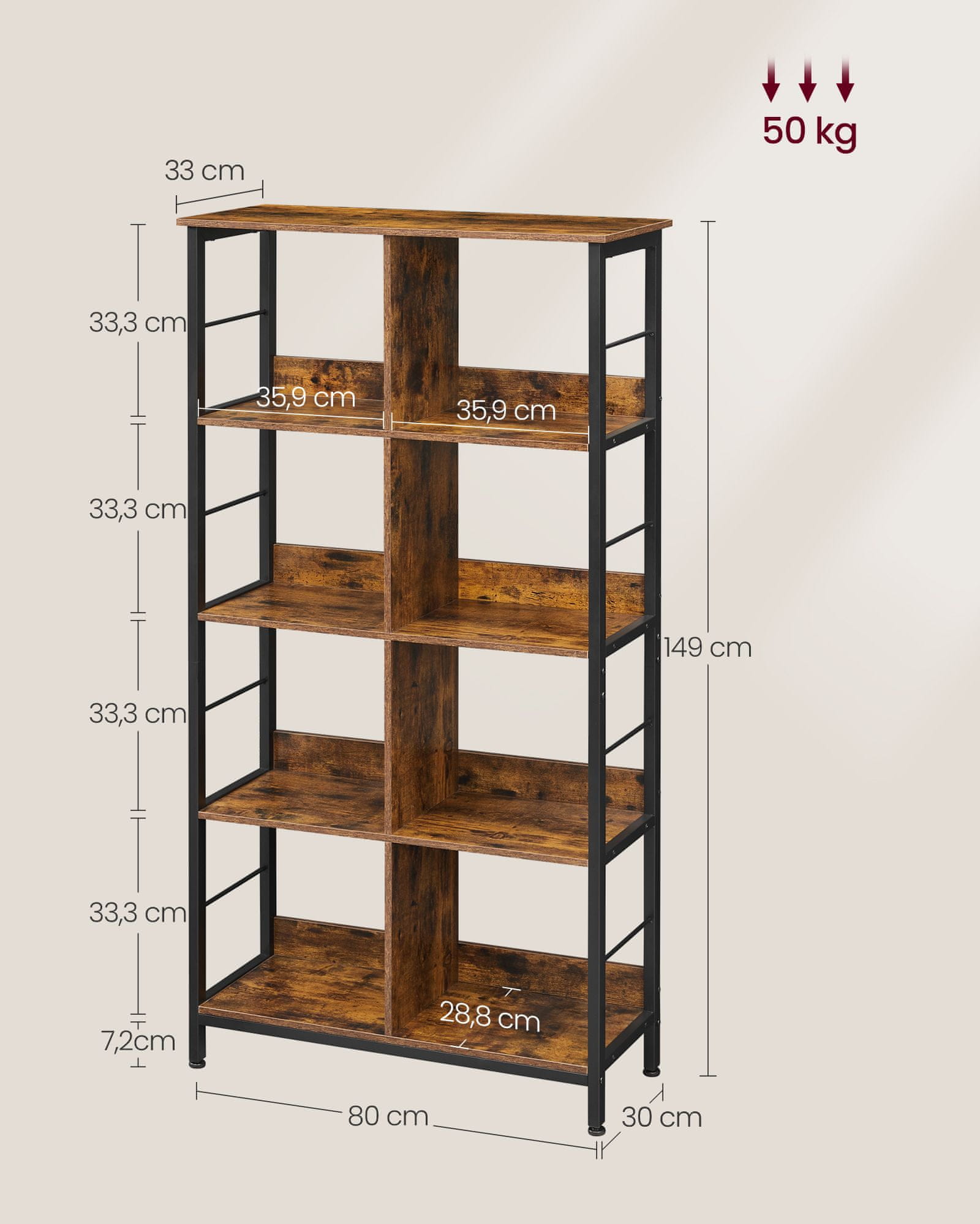 Ova polica za knjige s 4 razine nudi praktično i elegantno rješenje za pohranu vaših knjiga dekoracija i osobnih predmeta. Dizajnirana da upotpuni dnevne sobe urede ili spavaće sobe stvara ugodan kutak za čitanje i dodaje industrijski štih vašem interijeru. Njena čvrsta konstrukcija osigurava stabilnost i dugotrajnost što je čini prikladnom za organizaciju raznih predmeta.