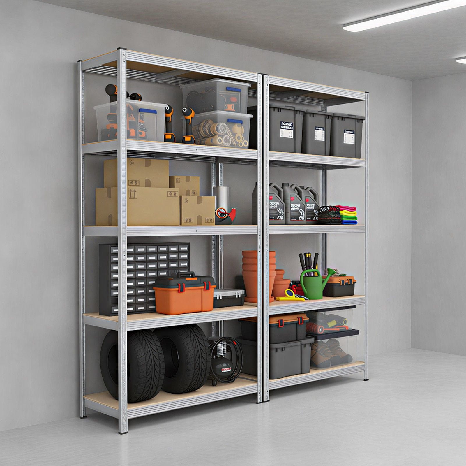 Ovaj set polica velike nosivosti idealan je za organizaciju garaža, podruma ili radionica. Njegov čvrsti čelični okvir i podesive police pružaju pouzdano skladištenje alata i opreme, pomažući vam da održite prostor urednim i učinkovitijim.