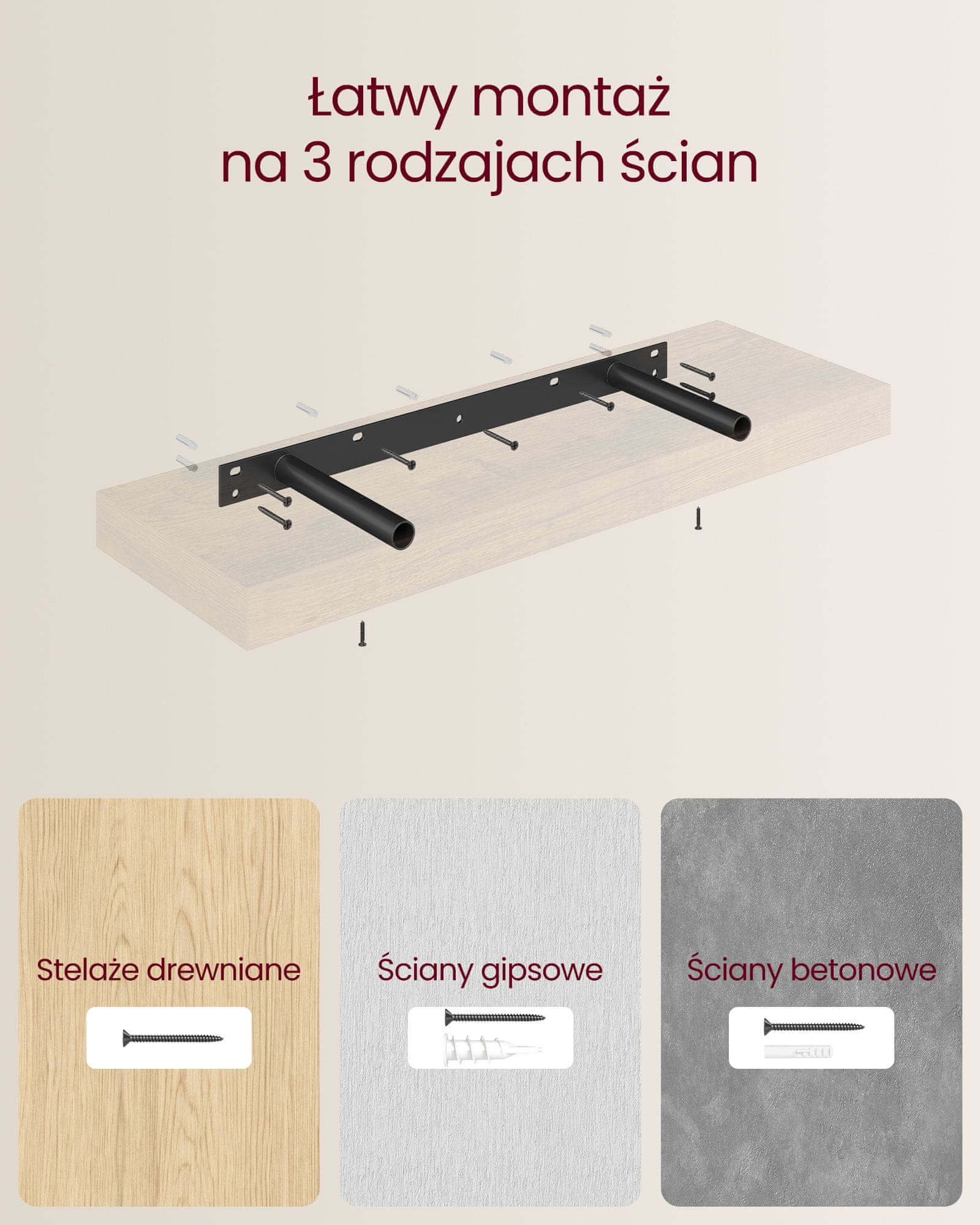 Izložite svoje omiljene fotografije, knjige ili ukrase s ovom modernom plutajućom zidnom policom. Njezin rustikalni dizajn unosi šarm u svaku prostoriju, a istovremeno nudi praktičan način za organizaciju i izlaganje vaših dragocjenih predmeta. Savršena za oplemenjivanje vašeg životnog prostora.